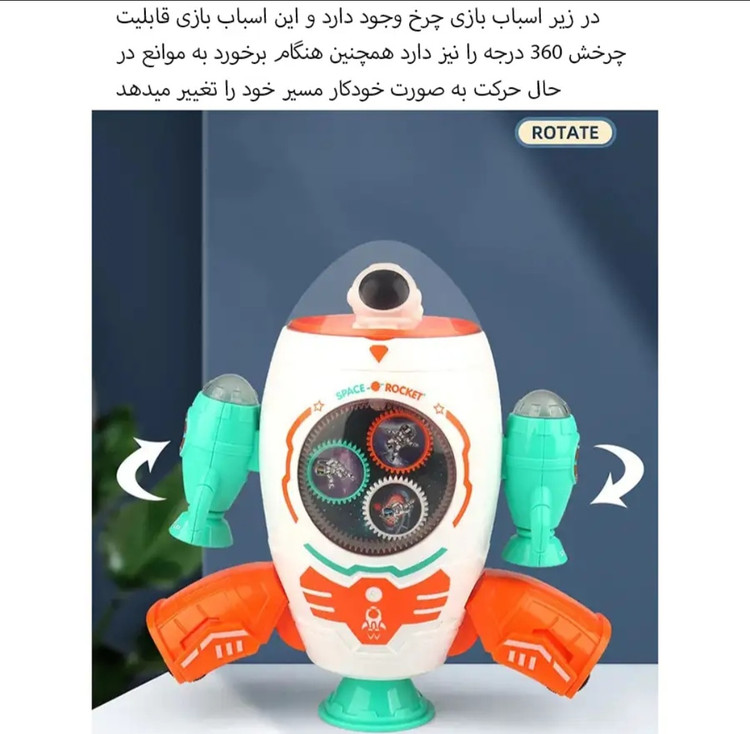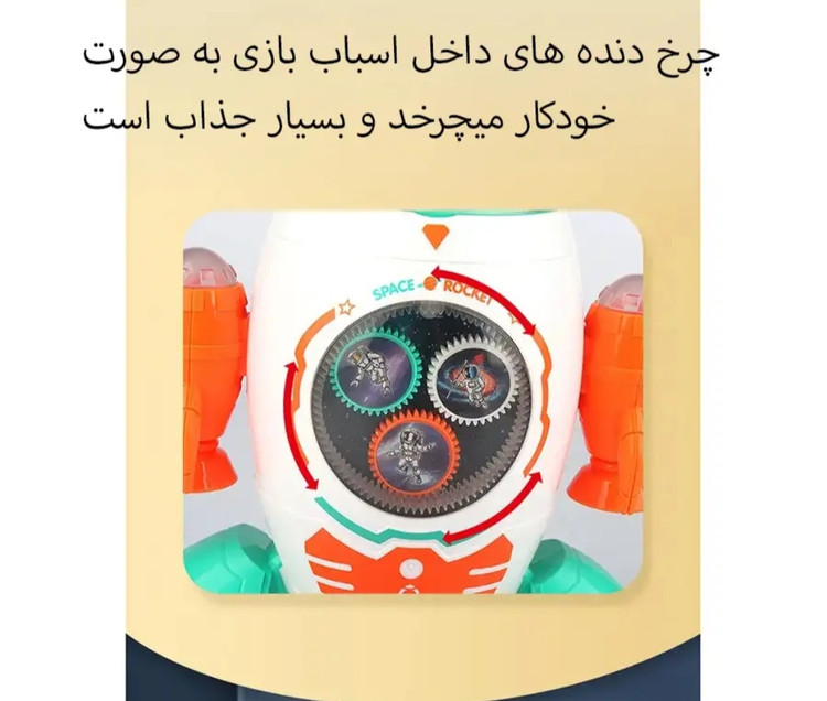 یکاسباببازیزیباوسرگرمکنندهاست،ایناسباببازیموشکفضاییموزیکالقطعابهترینانتخابشماست.سبکهایحرکتیجذابوهرسبکمملوازسرگرمیوسرزندگیکودکانهاستوکودکشماروجذبمیکنه.وقتیاسباب بازی راروشن میکنید،شروعبهرقصیدنمیکند،پاهایشرابالاپایینمیبرد،بهچپوراستراهمیرود.همچنینبانوروموسیقیهمراهاستایناسباببازیازموادایمنوغیرسمیساختهشدهتاکودکشماباخیالراحتبازیکند